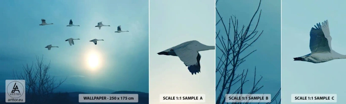 Muestra de fotomural autoadhesivo Deluxe Sticker - Adiós al verano por un año - Paisaje, Cigüeña, Aves - 100x30 cm