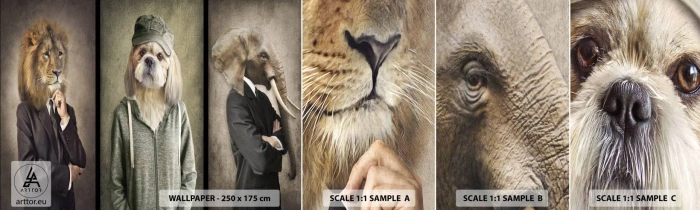 Muestra de fotomural autoadhesivo Deluxe Sticker - Prefiero tomármelo con calma - Abstracción, León, Perro - 100x30 cm