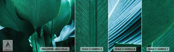 Muestra de fotomural autoadhesivo Deluxe Sticker - De cara a la luz - Hoja de banana, Banano, Planta - 100x30 cm