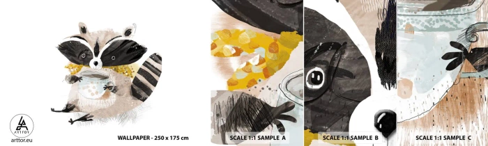 Muestra de fotomural autoadhesivo Deluxe Sticker - Mi amigo mapache - Para niños, Mapache, Gráficos - 100x30 cm
