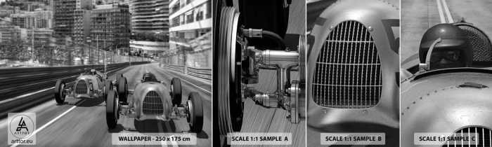 Muestra de fotomural autoadhesivo Deluxe Sticker - Érase una vez en Montecarlo - Automotor, Carrera, Vintage - 100x30 cm