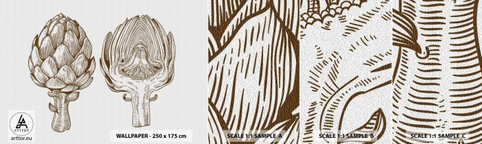 Muestra de fotomural autoadhesivo Deluxe Sticker - Lección de anatomía - Alcachofa, Cocina, Verduras - 100x30 cm