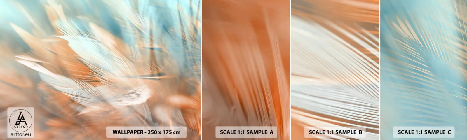Muestra de fotomural autoadhesivo Deluxe Sticker - En la tierra de la suavidad - Delicado, Plumas, Minimalismo - 100x30 cm