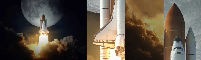 • Luna, Cohete Espacial, Nasa, Espacio y Astronomía, Para la oficina, Para el estudio, Para el comedor, Para el recibidor, Para el salón, Para el dormitorio, Negro, Naranja, Gris, Horizontal