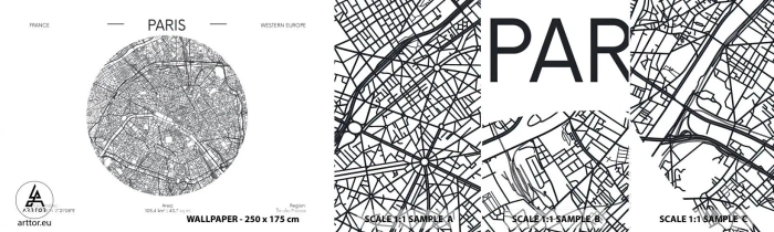 Muestra de fotomural autoadhesivo Deluxe Sticker - Anatomía de París - Mapa, París, Francia - 100x30 cm