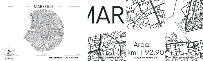 Muestra de fotomural autoadhesivo Deluxe Sticker - Anatomía de Marsella - Mapa, Marsella, Francia - 100x30 cm
