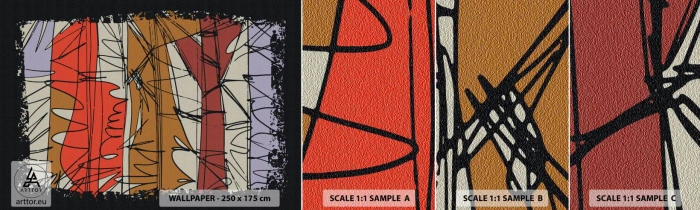 Muestra de fotomural autoadhesivo Deluxe Sticker - Composición espontánea - Abstracción, Pedazo, Garabatos - 100x30 cm
