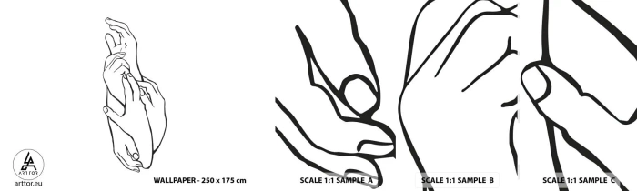 Muestra de fotomural autoadhesivo Deluxe Sticker - El tacto - Manos, Línea, Minimalismo - 100x30 cm