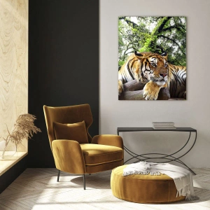 Cuadro sobre vidrio - Impresiones sobre Vidrio - Un tigre descansando en un bosque tropical verde. - 50x70cm - Atentamente - Decoración de pared moderna para salón y dormitorio ARTTOR