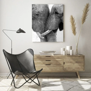 La pintura "Una sincera confesión" es una emotiva fotografía en blanco y negro de dos elefantes, cuyas frentes y colmillos se tocan suavemente. Es un momento único de cercanía y confianza, capturado de forma sutil pero increíblemente reveladora. La textura de la piel de los animales, sus miradas expresivas y su simetría natural crean una composición llena de emoción y fuerza. No es solo un retrato de dos animales, sino una historia sobre el vínculo que une a las criaturas del mundo natural. La fotografía irradia paz, respeto y majestuosidad, lo que la convierte en una opción ideal para interiores que buscan equilibrio y armonía.