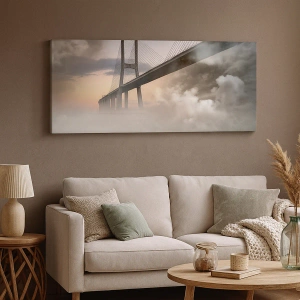 Cuadro sobre lienzo - Impresión de Imagen - Un puente sobre un río rodeado de niebla por la mañana. - 100x70cm - Junto al río que no existe - Decoración de pared moderna para salón y dormitorio ARTTOR