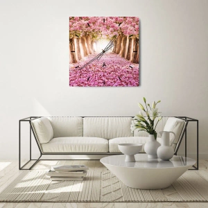 Reloj de pared - Reloj de vidrio - Una avenida de cerezos en flor - 30x30cm - El camino al paraíso - Decoración de pared moderna para salón, cocina y dormitorio ARTTOR