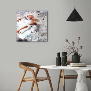 - Este reloj de pared presenta a una bailarina con un vestido impresionista blanco. Una decoración sutil y elegante que aporta arte a tu interior.