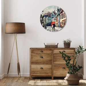Reloj de pared - Reloj de vidrio - Una calle romántica con un paraguas con el telón de fondo de casas de vecindad bajo la lluvia. - 30x30cm - Lluvia para dos - Decoración de pared moderna para salón, cocina y dormitorio ARTTOR