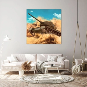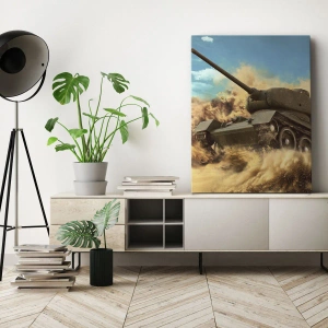 Cuadro mural - Invencible - Tanque en acción en el desierto, rodeado de polvo de arena