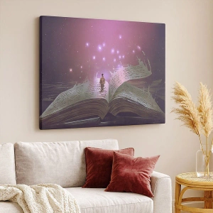 Cuadro sobre lienzo - Impresión de Imagen - Una figura pisa un libro abierto bajo una luz mágica. - 50x70cm - Una invitación a otro mundo - Decoración de pared moderna para salón y dormitorio ARTTOR