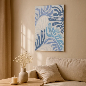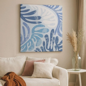 Cuadro mural - Helechos Azules - Formas abstractas en tonos azules sobre fondo blanco