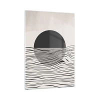 Cuadro sobre vidrio - Impresiones sobre Vidrio - Ondas negras y un círculo sobre un fondo beige - 50x70cm - Media composición - Decoración de pared moderna para salón y dormitorio ARTTOR
