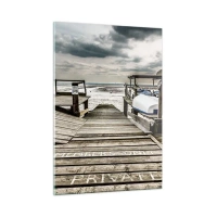 Cuadro sobre vidrio - Impresiones sobre Vidrio - Un yate amarrado en una bahía tranquila al anochecer. - 50x70cm - Atardecer en la bahía - Decoración de pared moderna para salón y dormitorio ARTTOR