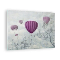 Cuadro sobre vidrio - Impresiones sobre Vidrio - Globos morados flotando entre las nubes y las ramas de los árboles. - 70x50cm - Surcando los cielos - Decoración de pared moderna para salón y dormitorio ARTTOR
