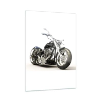 Cuadro sobre vidrio - Impresiones sobre Vidrio - Una motocicleta cromada de estilo moderno sobre un fondo blanco. - 50x70cm - Sueño de un coleccionista - Decoración de pared moderna para salón y dormitorio ARTTOR