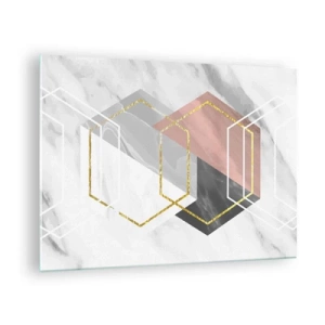 Cuadro sobre vidrio - Impresiones sobre Vidrio - Formas geométricas doradas sobre un fondo de mármol. - 70x50cm - Composición en cadena - Decoración de pared moderna para salón y dormitorio ARTTOR