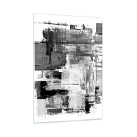 Cuadro sobre vidrio - Impresiones sobre Vidrio - Abstracción en blanco y negro con estructura geométrica. - 50x70cm - El gris es hermoso - Decoración de pared moderna para salón y dormitorio ARTTOR