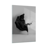 Cuadro sobre vidrio - Impresiones sobre Vidrio - Una bailarina con un vestido negro flotando dinámicamente en el aire. - 50x70cm - La música da alas - Decoración de pared moderna para salón y dormitorio ARTTOR