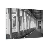 Cuadro sobre vidrio - Impresiones sobre Vidrio - Una columnata en blanco y negro con un juego rítmico de luces y sombras. - 70x50cm - Galería soleada - Decoración de pared moderna para salón y dormitorio ARTTOR