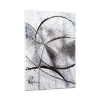 Cuadro sobre vidrio - Impresiones sobre Vidrio - Una composición en blanco y negro de líneas que se cruzan y arcos geométricos. - 50x70cm - Fantasía futurista - Decoración de pared moderna para salón y dormitorio ARTTOR