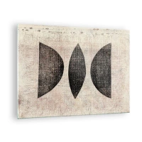 Cuadro sobre vidrio - Impresiones sobre Vidrio - Formas geométricas negras sobre un fondo beige - 70x50cm - Abstracción étnica - Decoración de pared moderna para salón y dormitorio ARTTOR