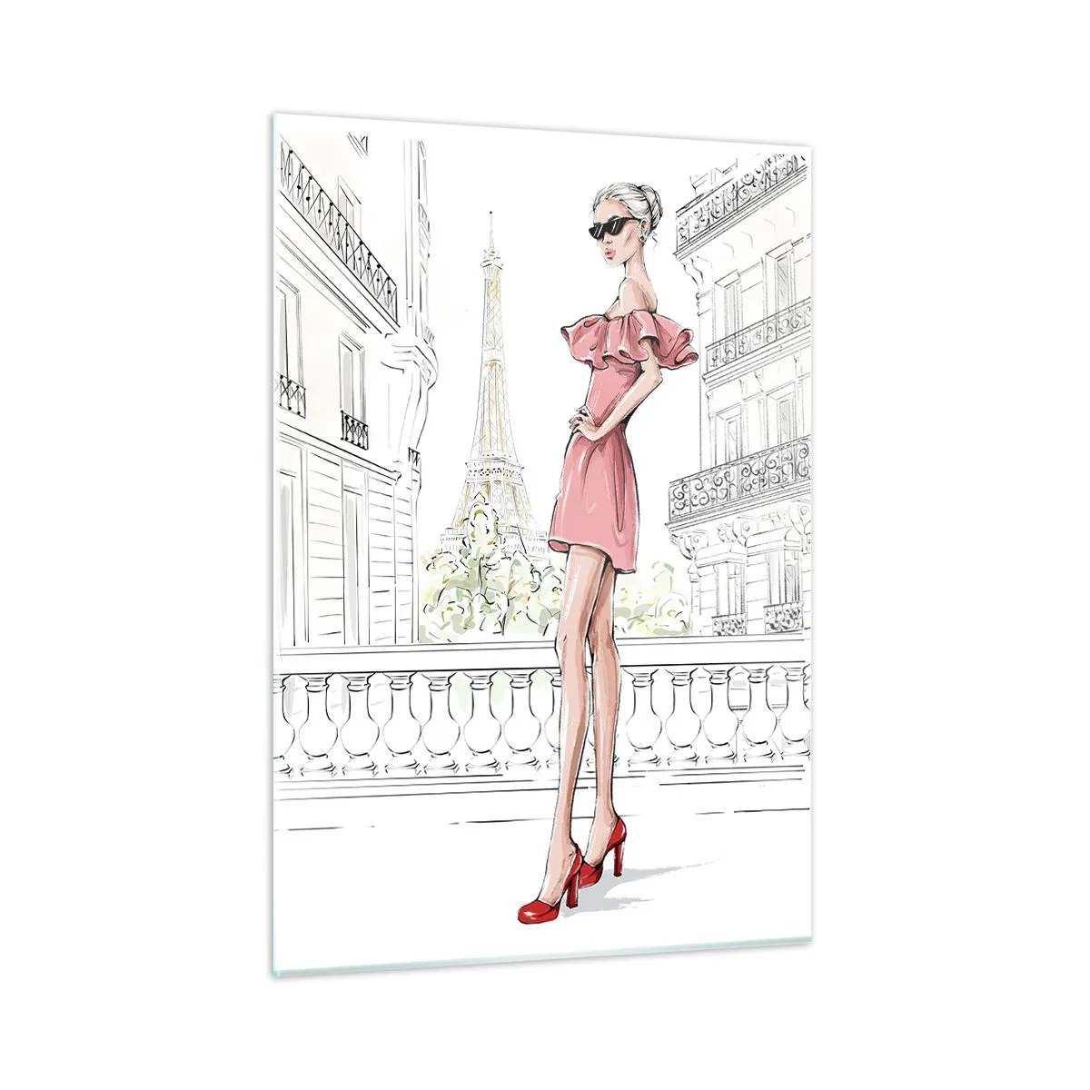 Cuadro sobre vidrio - Impresiones sobre Vidrio - El molino rojo del Moulin Rouge entre las casas de vecindad parisinas - 50x70cm - Iconos parisinos - Moulin Rouge - Decoración de pared moderna para salón y dormitorio ARTTOR