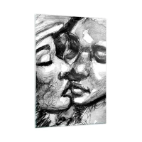 Cuadro sobre vidrio - Impresiones sobre Vidrio - Boceto en blanco y negro de un tierno beso. - 50x70cm - Un momento tierno - Decoración de pared moderna para salón y dormitorio ARTTOR