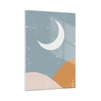 Cuadro sobre vidrio - Impresiones sobre Vidrio - Una mujer con un vestido blanco caminando descalza en una playa soleada. - 50x70cm - Al encuentro del sol y del viento - Decoración de pared moderna para salón y dormitorio ARTTOR