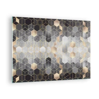 Cuadro sobre vidrio - Impresiones sobre Vidrio - Patrón geométrico de hexágonos en líneas doradas. - 70x50cm - Composición de diamantes - Decoración de pared moderna para salón y dormitorio ARTTOR