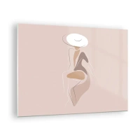 Cuadro sobre vidrio - Impresiones sobre Vidrio - Silueta de una mujer con sombrero sobre un fondo beige - 70x50cm - Una auténtica dama - Decoración de pared moderna para salón y dormitorio ARTTOR