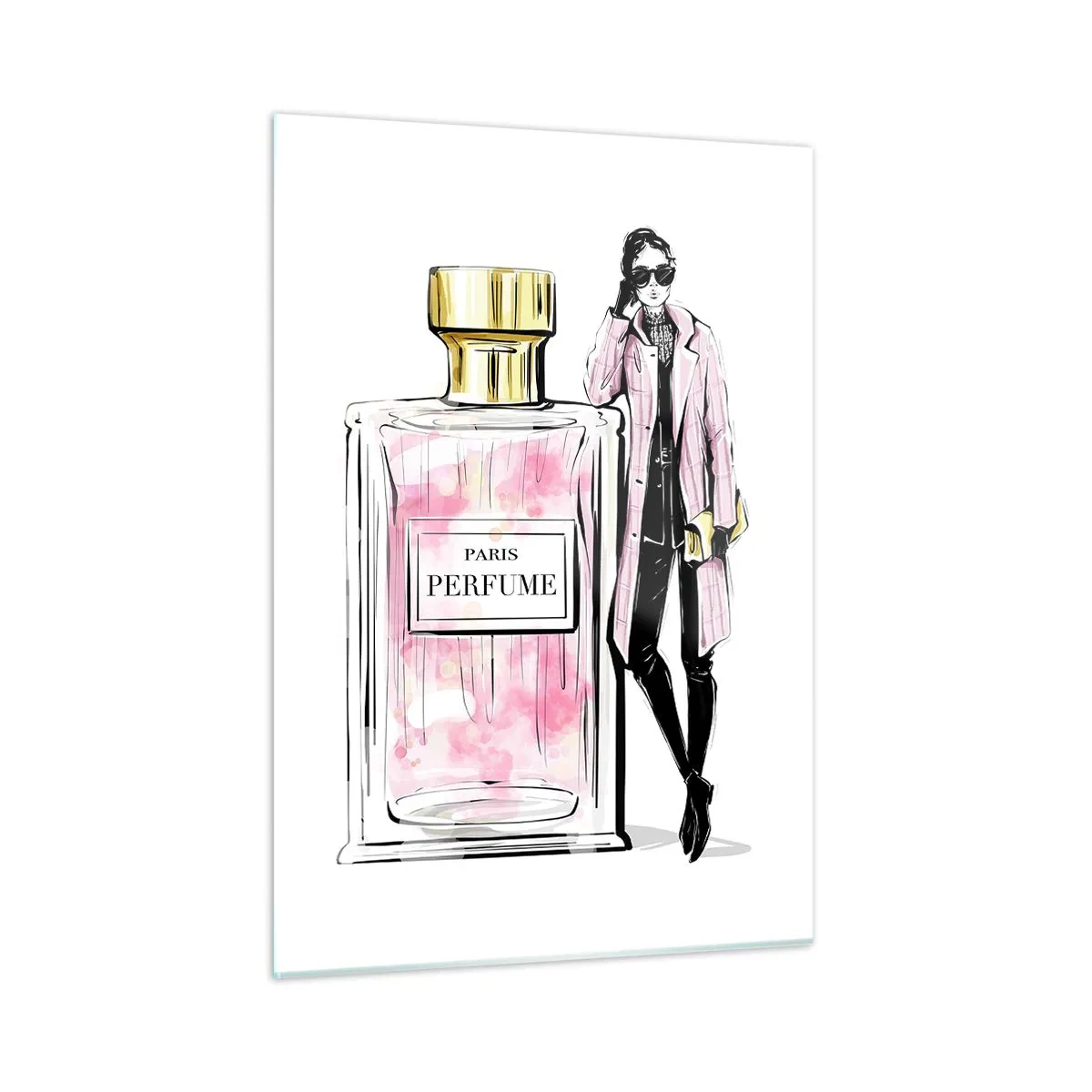 Cuadro sobre vidrio - Impresiones sobre Vidrio - Retrato estilizado de una mujer con un vestido rosa. - 50x70cm - Recuérdame como una pintura... - Decoración de pared moderna para salón y dormitorio ARTTOR