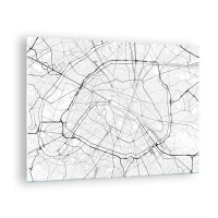 Cuadro sobre vidrio - Impresiones sobre Vidrio - Mapa de la ciudad en blanco y negro con cuadrícula de calles y arterias circulares - 70x50cm - Flor de París - Decoración de pared moderna para salón y dormitorio ARTTOR