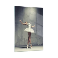 Cuadro sobre vidrio - Impresiones sobre Vidrio - Una bailarina con un vestido blanco frente a una pared sin rematar - 50x70cm - Ligero como un pájaro - Decoración de pared moderna para salón y dormitorio ARTTOR