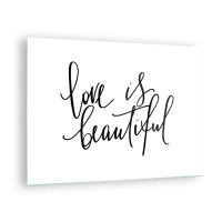 Cuadro sobre vidrio - Impresiones sobre Vidrio - La cita "el amor es hermoso" en un elegante estilo escrito a mano sobre un fondo blanco. - 70x50cm - Leer y repetir - Decoración de pared moderna para salón y dormitorio ARTTOR
