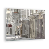Cuadro sobre vidrio - Impresiones sobre Vidrio - Una calle con cafés de estilo urbano artístico. - 70x50cm - Alegrías urbanas - Decoración de pared moderna para salón y dormitorio ARTTOR