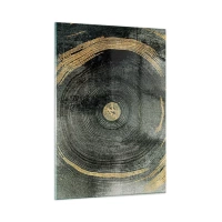 Cuadro sobre vidrio - Impresiones sobre Vidrio - Sección transversal de un tronco de árbol con detalles y acentos dorados. - 50x70cm - Cambio y perpetuidad - Decoración de pared moderna para salón y dormitorio ARTTOR