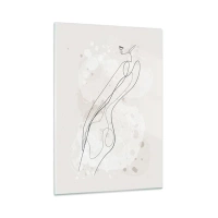 Cuadro sobre vidrio - Impresiones sobre Vidrio - Silueta contorneada de una mujer en tonos beige. - 50x70cm - Una mirada no dice nada y al mismo tiempo lo dice todo - Decoración de pared moderna para salón y dormitorio ARTTOR