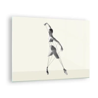 Cuadro sobre vidrio - Impresiones sobre Vidrio - Silueta en blanco y negro de una bailarina con un motivo de línea geométrica. - 70x50cm - Títere de sí misma - Decoración de pared moderna para salón y dormitorio ARTTOR
