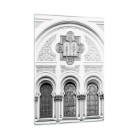Cuadro sobre vidrio - Impresiones sobre Vidrio - La fachada de un edificio histórico con ventanas y detalles decorativos. - 50x70cm - En la frontera de las culturas - Decoración de pared moderna para salón y dormitorio ARTTOR