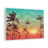 Cuadro sobre vidrio - Impresiones sobre Vidrio - Ilustración de palmeras al atardecer - 70x50cm - Ambientes tropicales - Decoración de pared moderna para salón y dormitorio ARTTOR