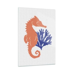 Cuadro sobre vidrio - Impresiones sobre Vidrio - Un paisaje marino tranquilo en estilo acuarela en tonos azules. - 50x70cm - Suave marea otoñal - Decoración de pared moderna para salón y dormitorio ARTTOR