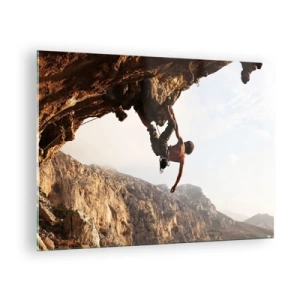 Cuadro sobre vidrio - Impresiones sobre Vidrio - Escalando una roca vertical en un paisaje montañoso - 70x50cm - Un mundo en la roca - Decoración de pared moderna para salón y dormitorio ARTTOR