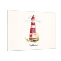 Cuadro sobre vidrio - Impresiones sobre Vidrio - Faro de acuarela con la inscripción Faro - 70x50cm - Siempre observando - Decoración de pared moderna para salón y dormitorio ARTTOR