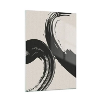 Cuadro sobre vidrio - Impresiones sobre Vidrio - Pinceladas caligráficas negras y dinámicas sobre un fondo claro. - 50x70cm - Barrido y circular - Decoración de pared moderna para salón y dormitorio ARTTOR